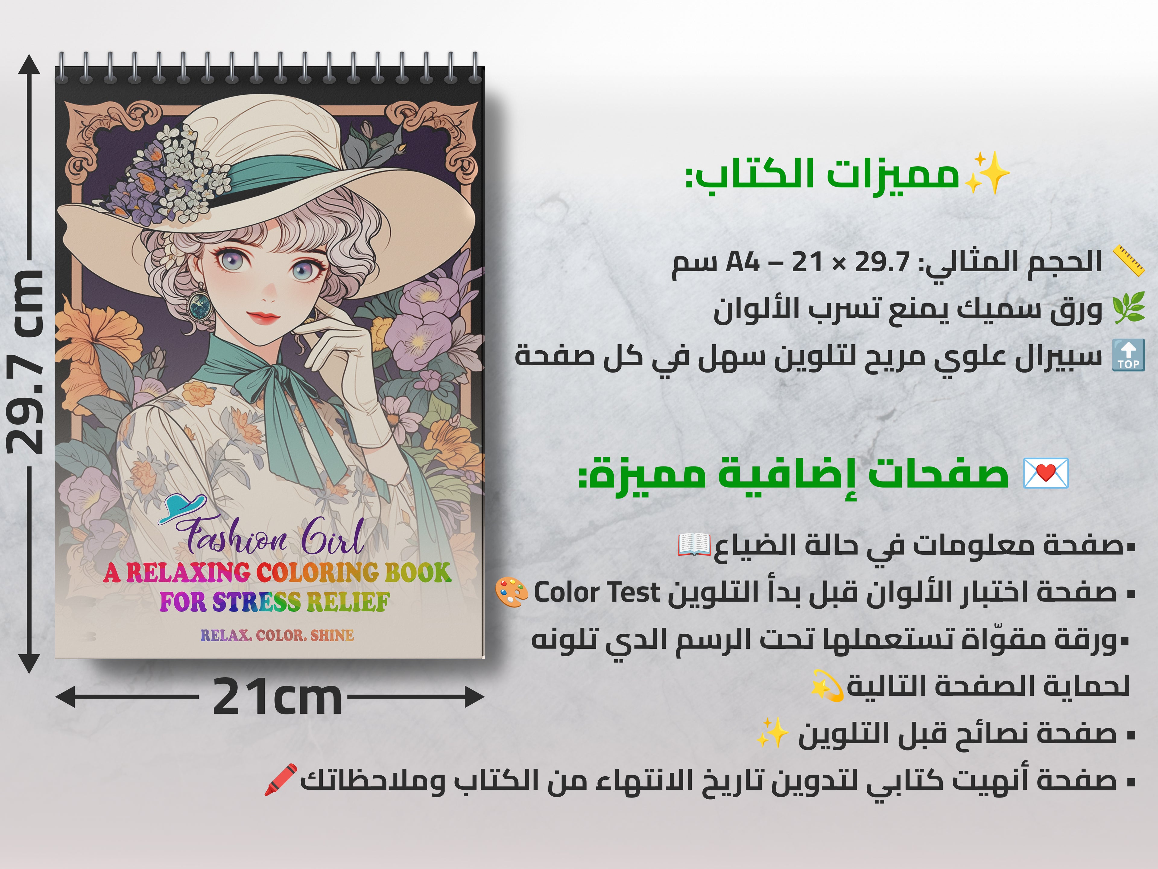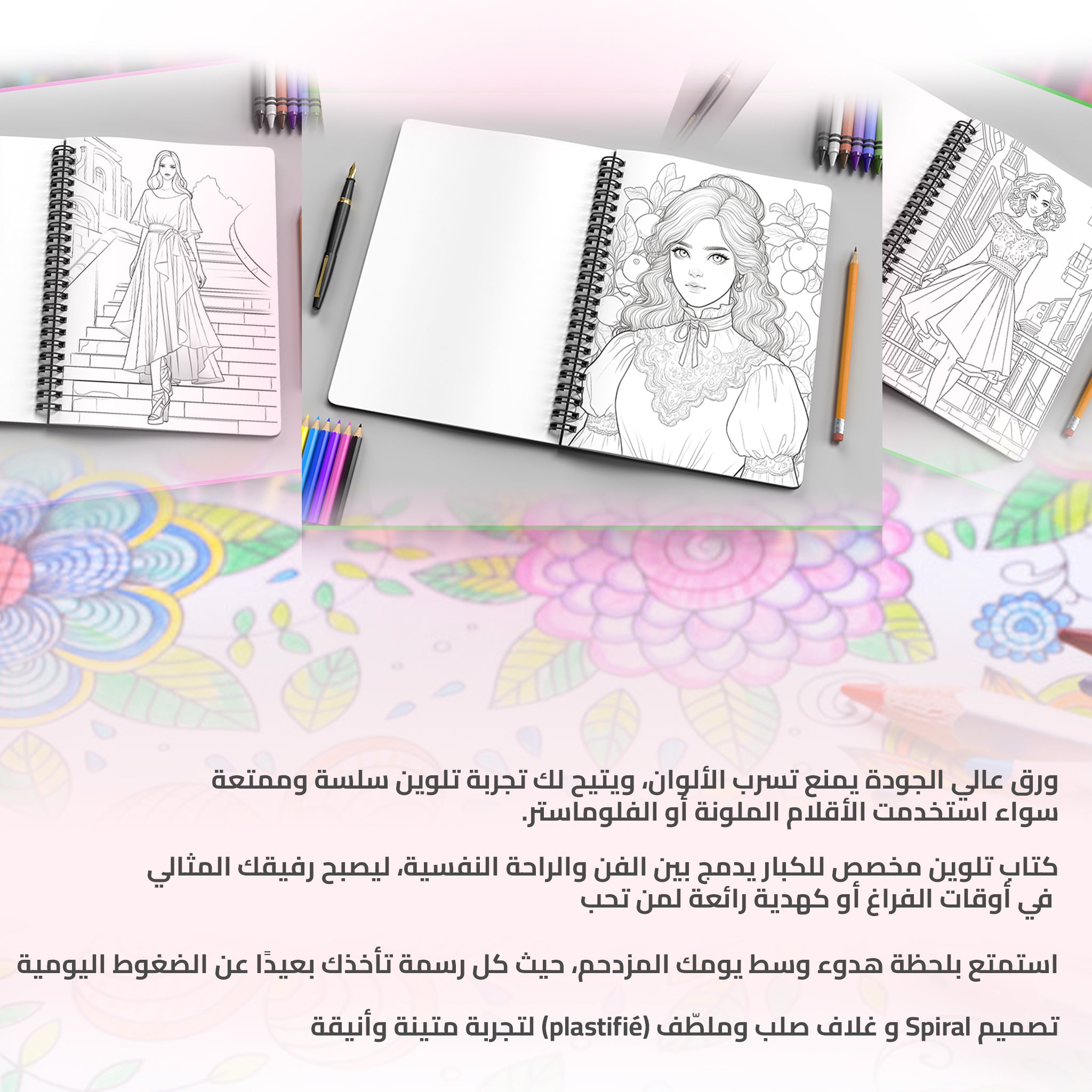 نستخدم ورقًا سميكًا يمنع تسرب الألوان إلى الصفحة التالية، ومناسب لجميع أنواع أدوات التلوين.